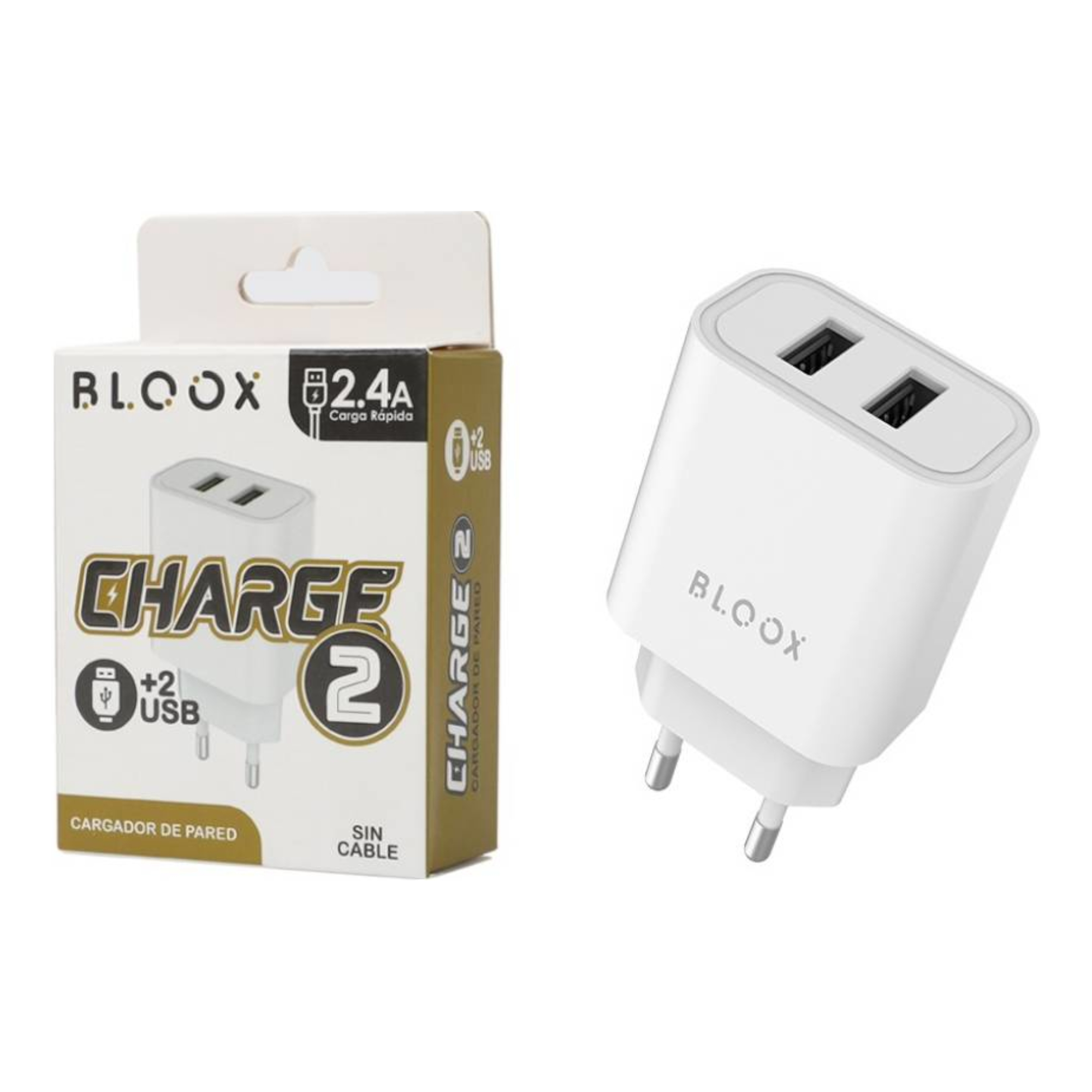 BLOOXCHARGE2 - Cargador De Pared Usb Bloox Charge 2 Usb 2.4A