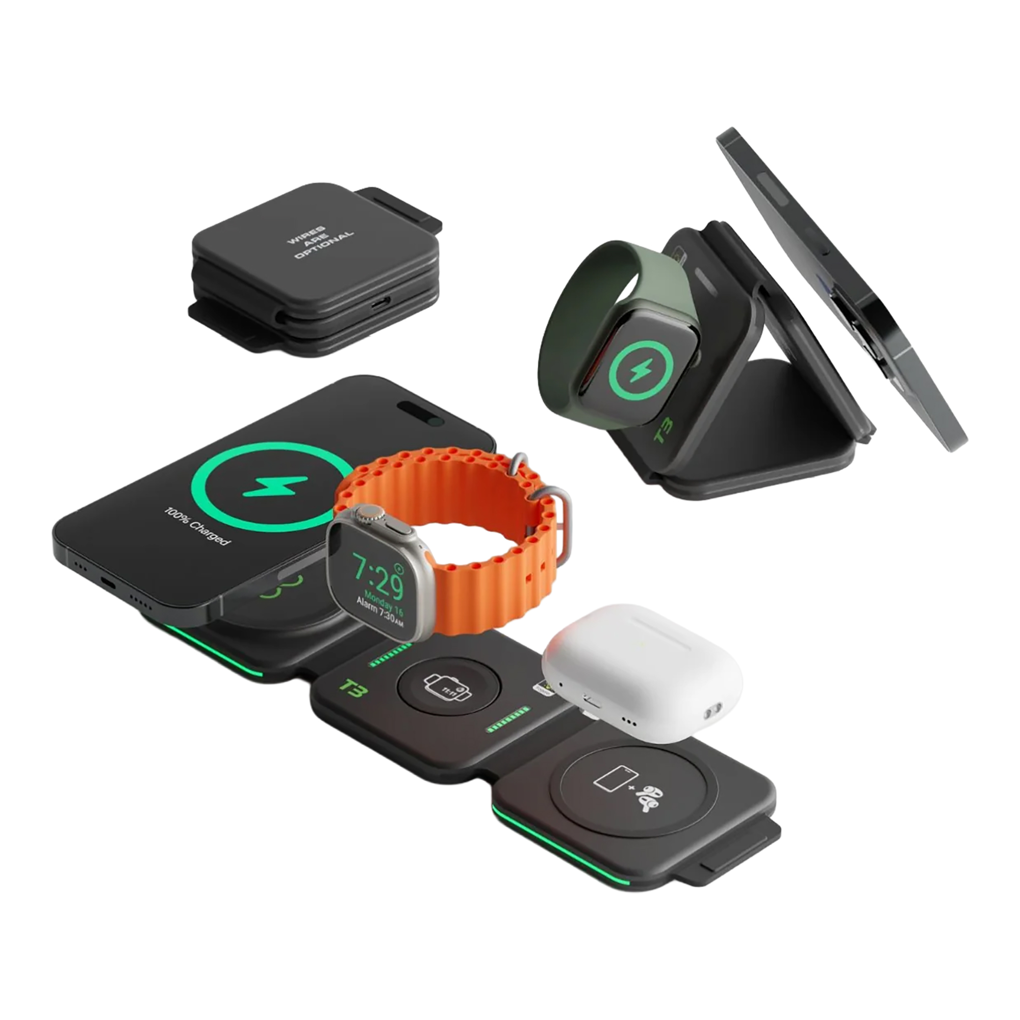Carga de forma inalámbrica y simultánea AirPods, iPhone y Apple Watch.