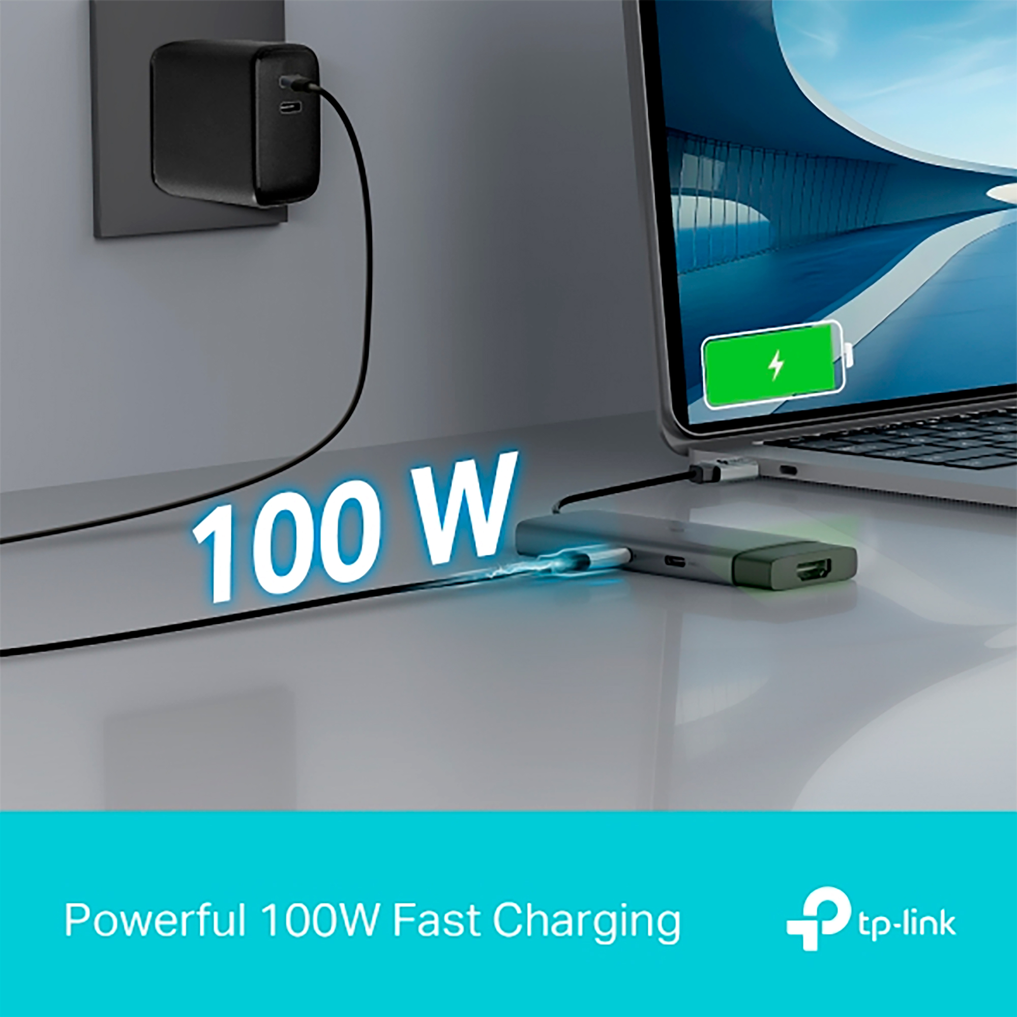 Potente Carga Rápida de 100 W. Suministra hasta 100 W de potencia a tu PC mientras transfieres archivos o transmites contenido multimedia.