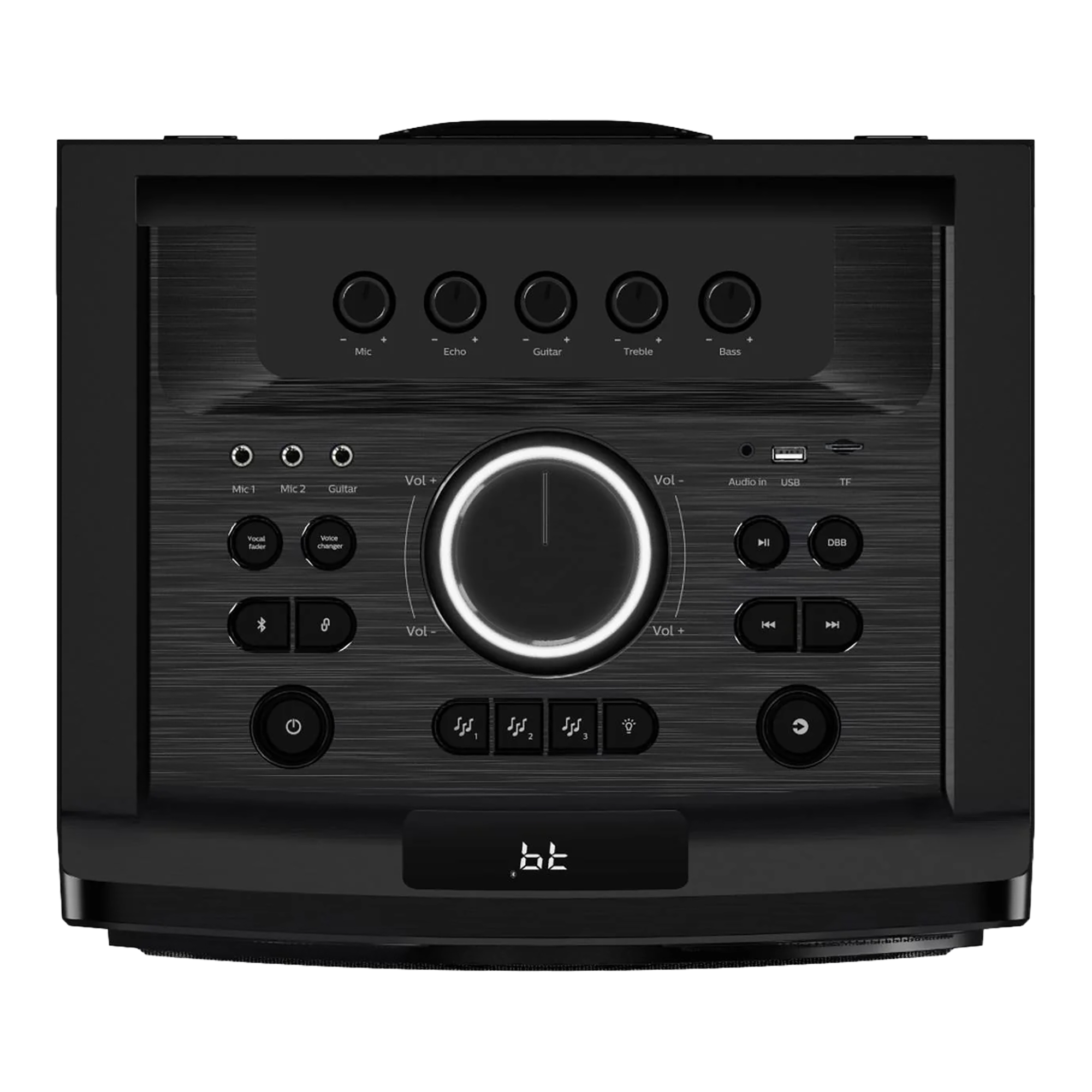 Los graves que hacen temblar la habitación y las luces LED multicolores del parlante hacen que la fiesta cobre vida. Los efectos de sonido de DJ se suman a la diversión, y las entradas de micrófono y guitarra le permiten ser la estrella.
