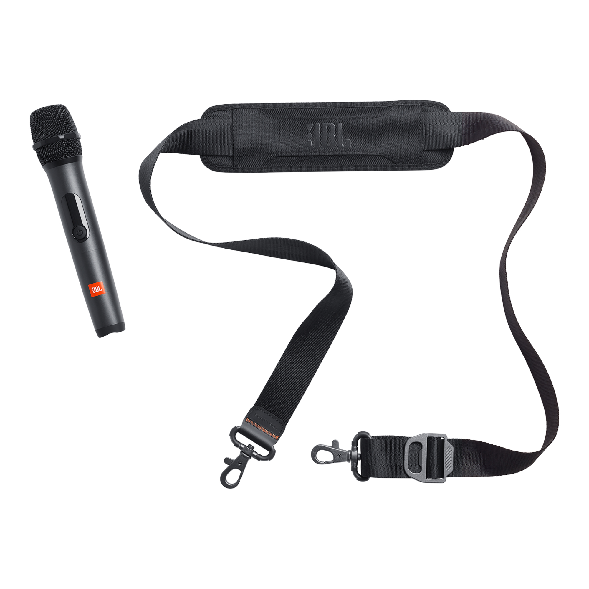JBL PartyBox On-The-Go Essential viene con un micrófono inalámbrico JBL con un alcance de hasta 10 metros.