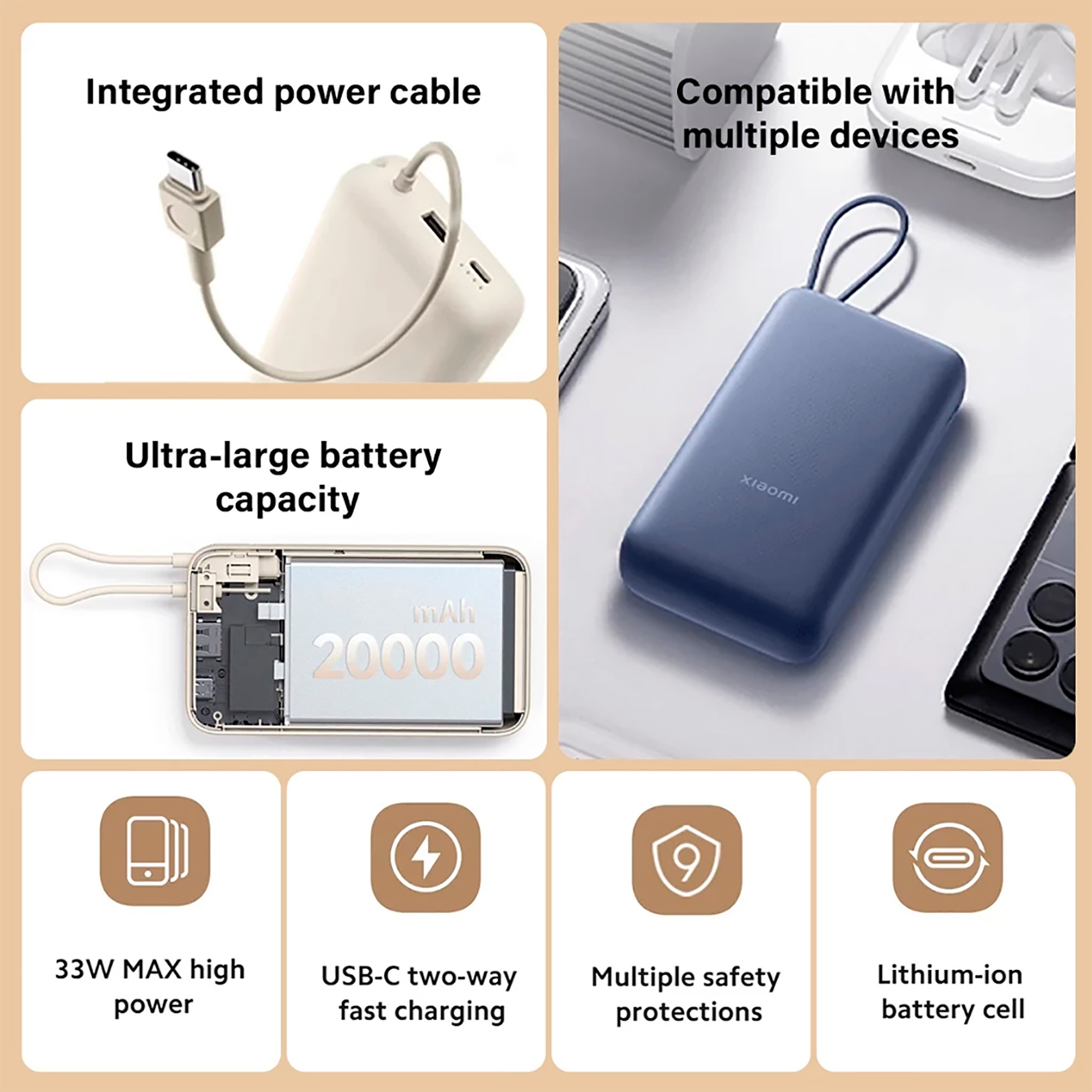 Compatible con múltiples dispositivos (smartphones, tablets, auriculares, smartbands...).